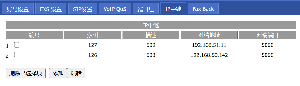 保存后可以继续添加多个 IP 中继,添加后显示添加结果: