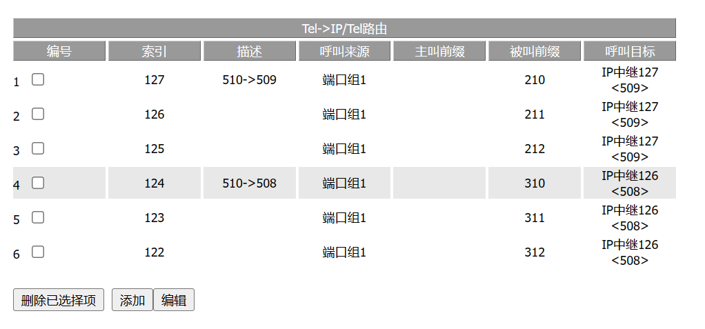 IP 中继的编号,范围:0-127,默认由大到小排列