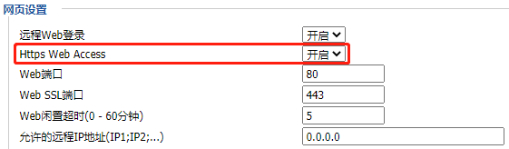 当网关配置完成后,调试电脑建议开启“Https Web Access”功能,如果后续需要对网关进行个性化设置,则可以通过网络环境下的电脑通过http://网关WAN口IP:80访问链接远程登录。本次演示的远程访问链接是http://192.168.20.149/。