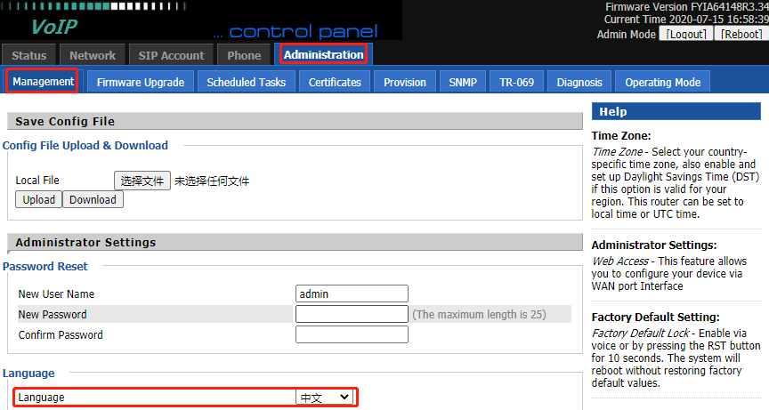 网页点击操作:Administration---Language,选择“中文”,网页滑到底部点击“Save”。