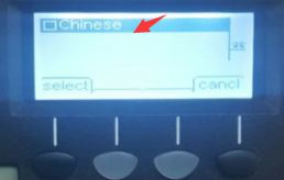 3.选择1 Language,设置语言,,点击select,如图所示,之后按上下键,选择Chinese,即可修改完成。