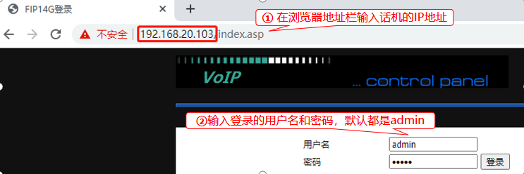 1、电脑打开浏览器,在“地址栏”输入话机的IP地址,登陆话机Web。
