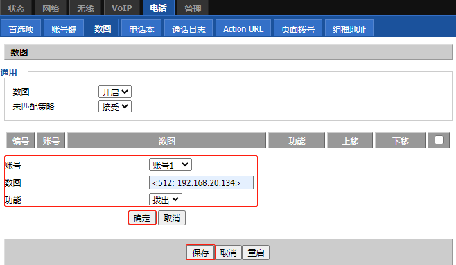 下图配置表示用512代替IP地址192.168.20.134呼叫。