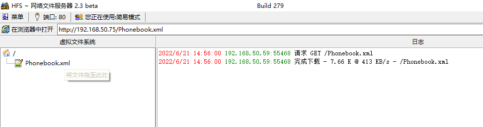 当PBX没有集成通信录功能时,推荐搭建简易版的HTTP服务器作为电话本服务器。