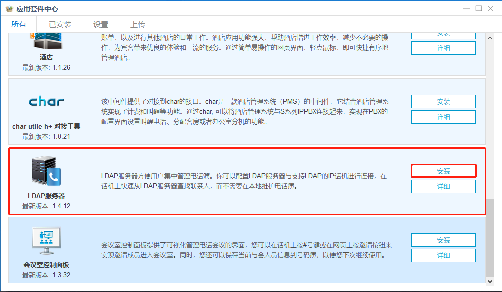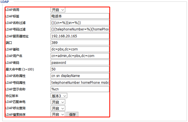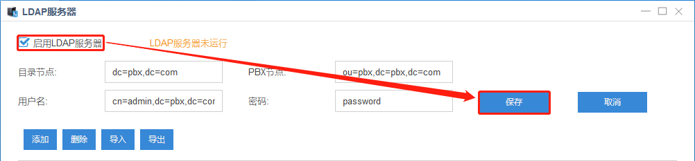 LDAP用户名:cn=admin,dc=pbx,dc=com