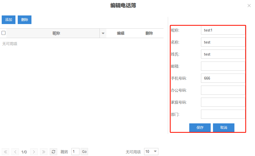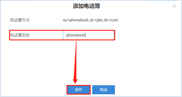 5. 选择刚刚添加的 “电话簿节点” 的按钮,输入相关信息,选择 “保存” 。