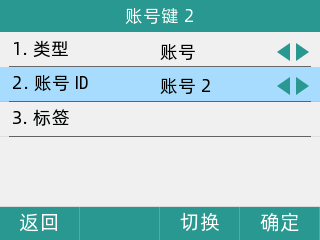在话机的操作面板上长按账号键唤出设置界面如下: