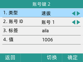 经过上述操作后就可以看到账号2按键设置为了【速拨】按键,这时通过该按键可以一键呼叫对方