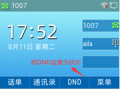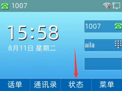 经过上述操作后就可以看到【DND】按键设置为了【状态】按键,这时通过该按键可以进入状态界面,查看话机相关信息。