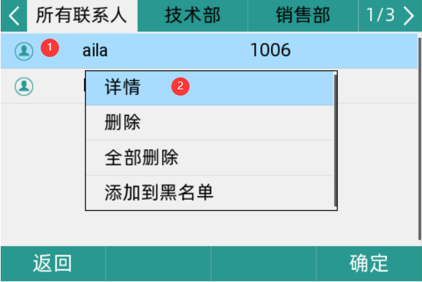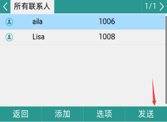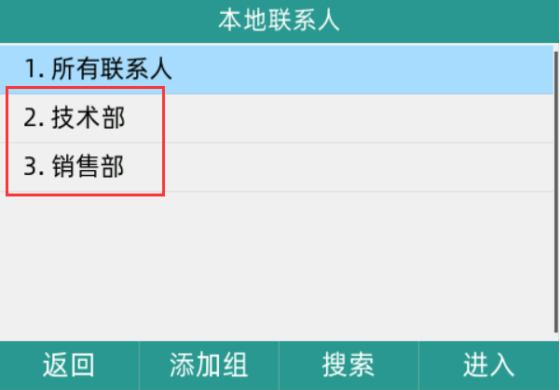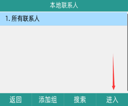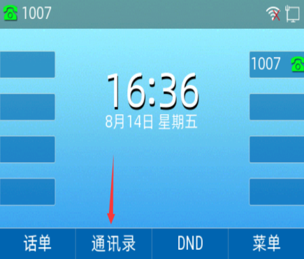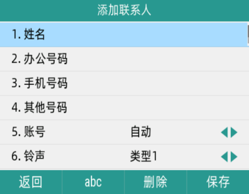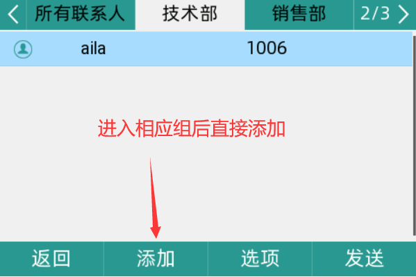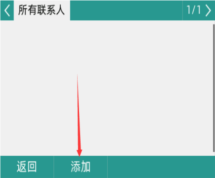 1、1 通过查看话机显示屏可以看到屏幕下发有通讯录的标识,然后通过按键【通讯录】-【进入】-【添加】即可添加联系人信息如下图: