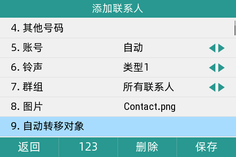 【自动转移对象】:当该联系人来电时,可以通过该配置将来电转移到设置的号码上。