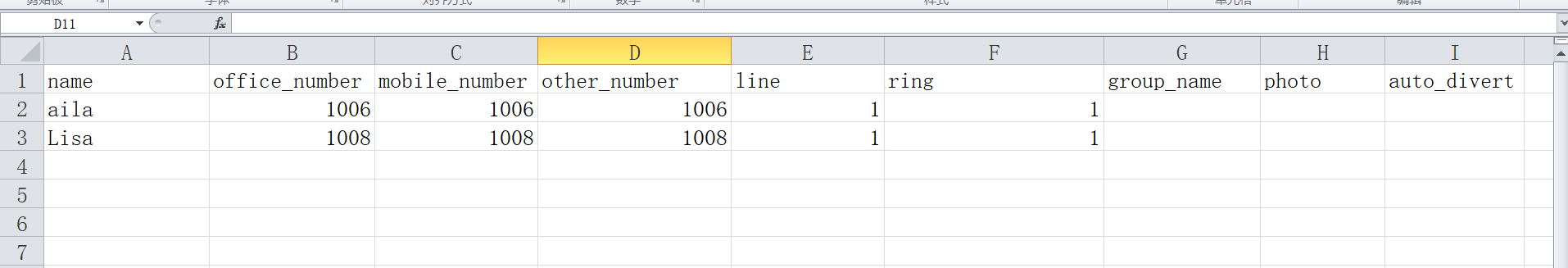 2.3 将模板相应的各个字段填上去之后就保存到本地,然后使用表格打开phonesbook .csv文件,按照相应字段将联系人信息填上去之后另存为到本地。
