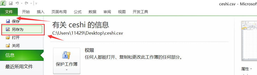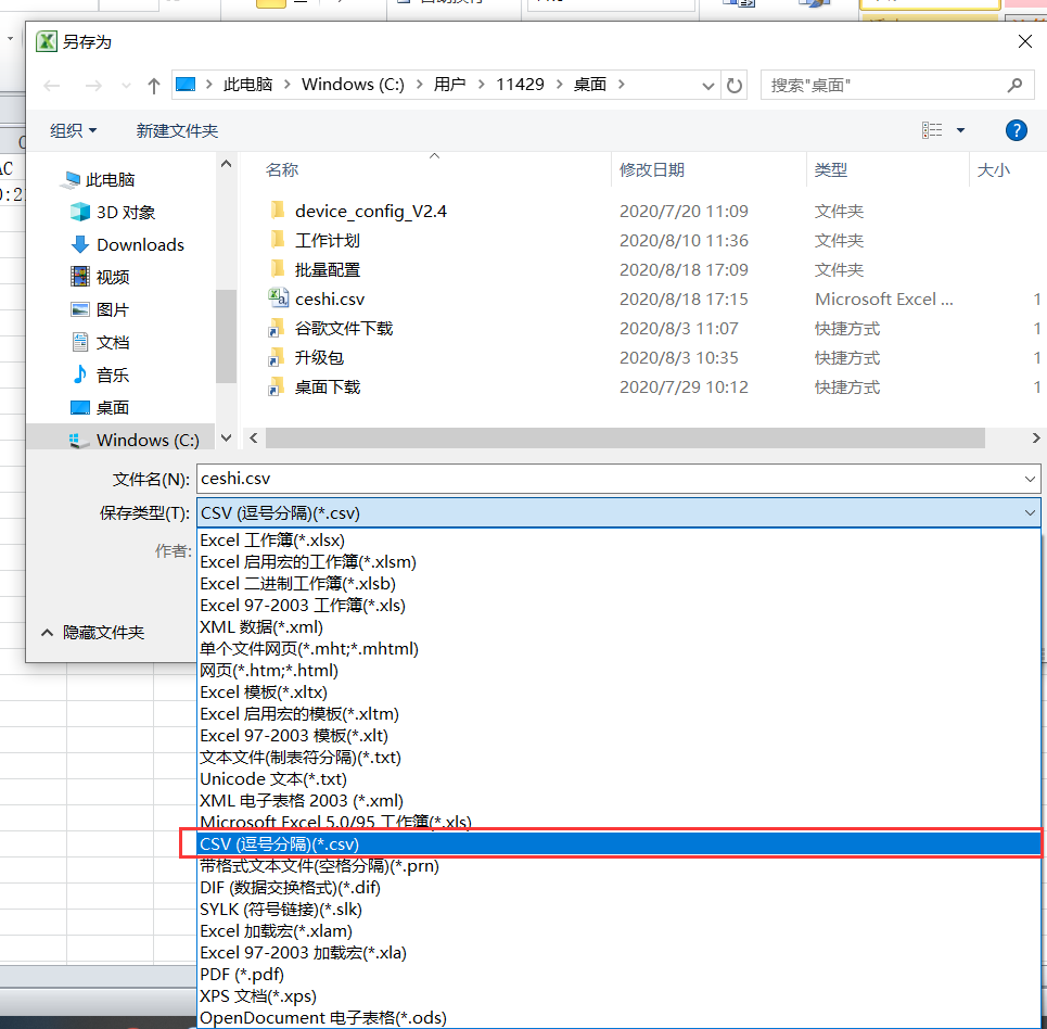 注意:另存为之后的文件格式需要保存为CSV(逗号分隔)(*.CSV)格式的文件如下图: