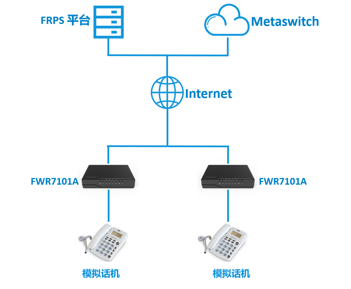 使用FWR7101A连接的两台模拟话机进行通话测试。
