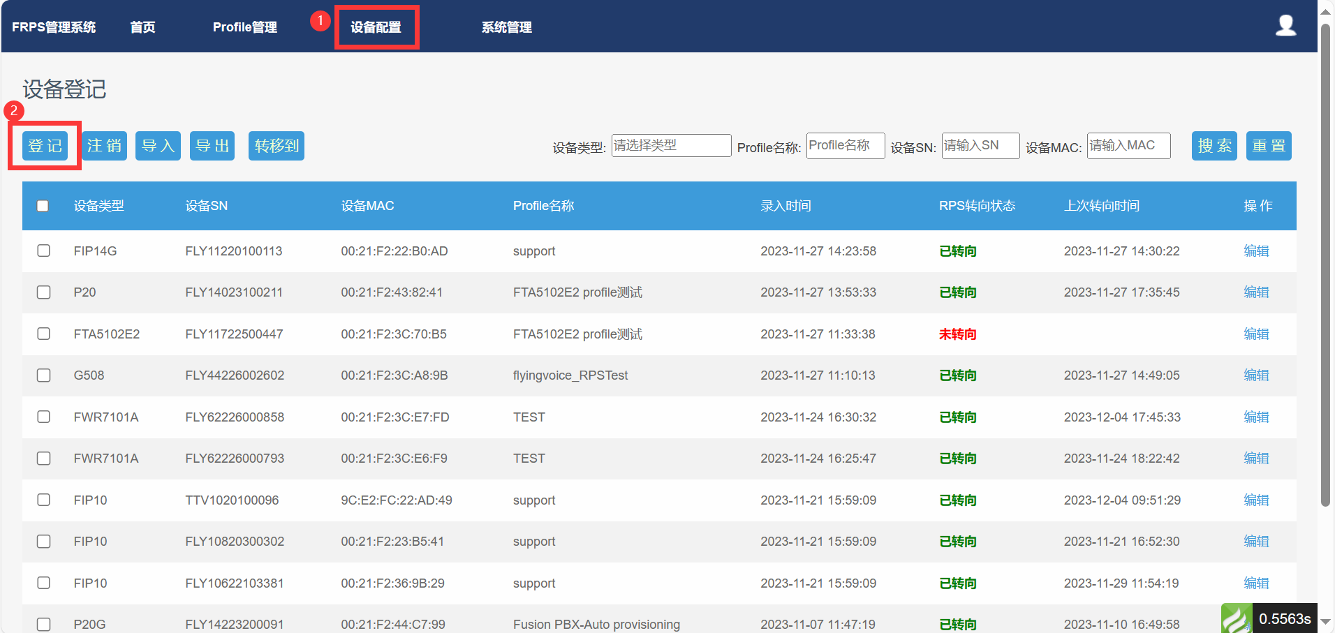 将FWR7101A登记到FRPS平台,与Metaswitch自动部署URL做绑定。