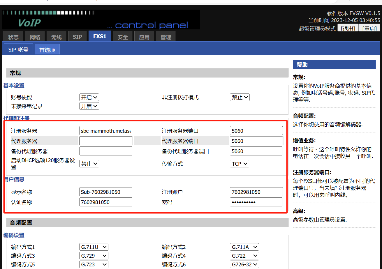登录FWR7101A的web界面--》FXS1--》SIP账号;