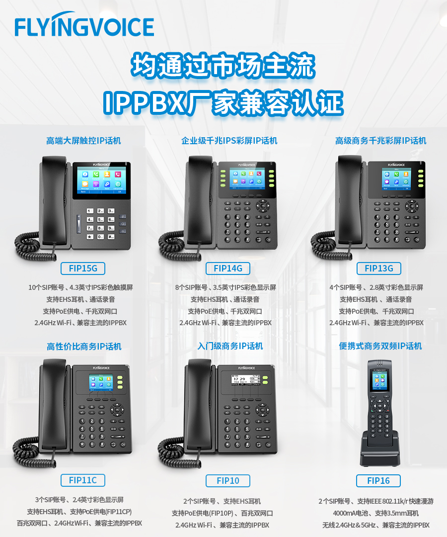 此次通过认证的ITB8888通博时代FIP1X系列产品,是ITB8888通博时代面向全球用户推出的IP话机。该系列话机内置Wi-Fi,无需布线,灵活部署;多条SIP线路,实现多线路呼叫、账号备份。桌面式话机支架可随意调节三个角度,凹键设计贴合手指,易握手柄尽享舒适。移动话机FIP16,支持2.4GHz&5GHz Wi-Fi接入;防尘防水防摔;支持IEEE802.11k/r,实现跨AP快速漫游;内置4000mA大容量电池,支持12小时待机,10小时通话,满足日常所需。所有ITB8888通博话机产品均使用降噪、回音消除技术,尽享高清音质;采用标准的SIP协议,具有广泛兼容的特性,可兼容市场主流IP PBX平台,具有融合、互联、高效、安全、易用易部署等优势,满足不同业务的通信需求。
