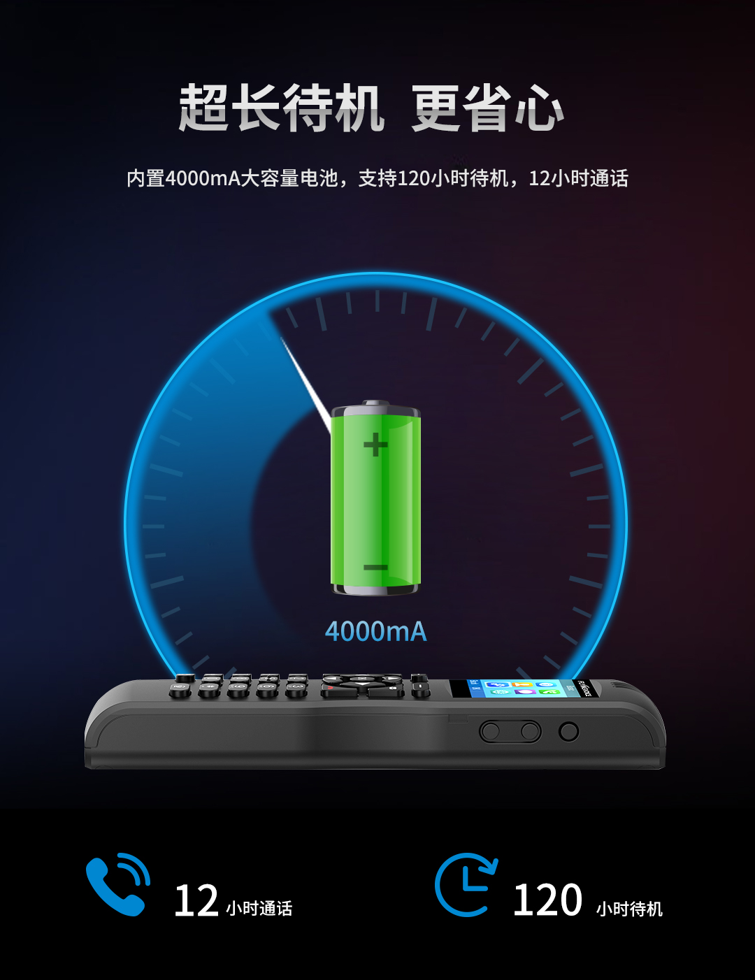 FIP16Plus内置4000mA大容量电池,拥有超强续航能力,可支持120小时超长待机,12小时通话,无需考虑电量问题,满足日常工作所需。