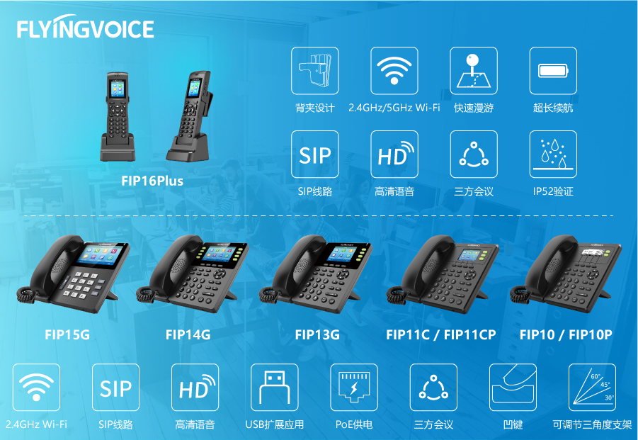 此次通过认证的ITB8888通博时代FIP1X系列产品,是ITB8888通博时代面向全球用户推出的IP话机。该系列话机内置Wi-Fi,无需布线,灵活部署;多条SIP线路,实现多线路呼叫、账号备份。桌面式话机支架可随意调节三个角度,凹键设计贴合手指,易握手柄尽享舒适。移动式话机FIP16Plus,支持2.4GHz&5GHz Wi-Fi接入,防尘防水防摔;支持IEEE802.11k/r,实现跨AP快速漫游;内置4000mA大容量电池,支持12小时通话,120小时待机,满足日常所需。所有ITB8888通博话机产品均使用降噪、回音消除技术,尽享高清音质;采用标准的SIP协议,具有广泛兼容的特性,可兼容市场主流IPPBX平台,具有融合、互联、高效、安全、易用易部署等优势,满足不同业务的通信需求。