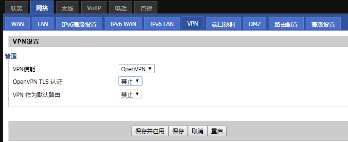 如果你想用LAN端口接入OpenVPN, 需要在“VPN作为默认路由”中选择“开启”选项。